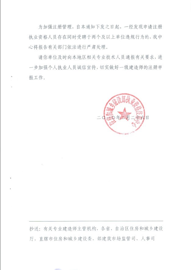 關(guān)于規(guī)范一級建造師注冊申報(bào)工作有關(guān)問題的函