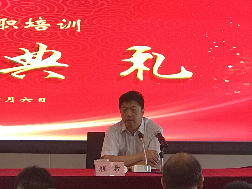 結業(yè)典禮上,總經(jīng)理程希同志發(fā)表講話。他對參加本次培訓的學生和所在部門提出了三點希望:一是希望新進應屆生調整好心態(tài),積極投入到新崗位;二是希望新進應屆生養(yǎng)成良好的職業(yè)習慣,善于學習、吃苦耐勞、敬業(yè)愛崗。三是希望各部門、各項目部做好“傳幫帶”,在工作上、生活上合理安排,讓學生盡快適應新崗位,同時要做好內(nèi)部考核評價工作。